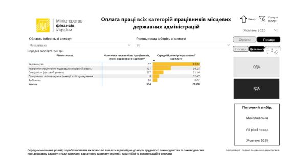 У районних державних адміністраціях Миколаївської області в жовтні заробітну плату нарахували 394 працівникам, а загальний середній показник становив понад 28 тисячі гривень.