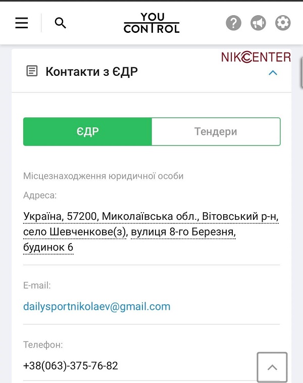ФОП Камашева Тетяна Федорівна, згідно з даними аналітичної системи YouControl, вказала своєю контактною електронною поштою адресу dailysportnikolaev@gmail.com.