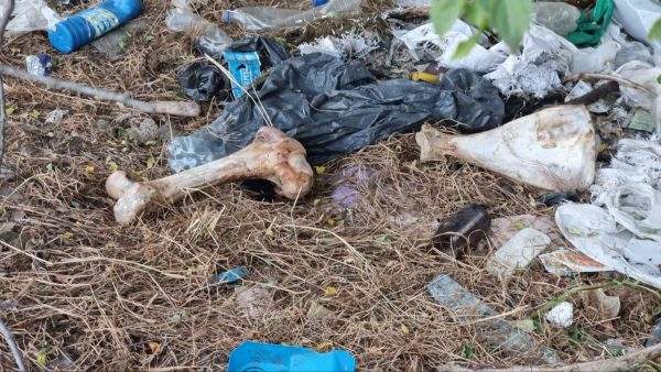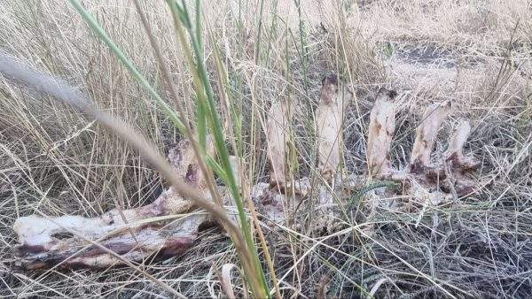Вздовж польової дороги лежать розкидані рештки тварин, які створюють нестерпний сморід і розтягуються бродячими собаками.