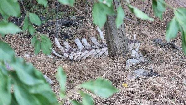 Вздовж польової дороги лежать розкидані рештки тварин, які створюють нестерпний сморід і розтягуються бродячими собаками.
