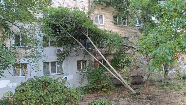 обоє дерева обвалилися беріть стіну та вікна житлового будинку, створюючи загрозу подальшого пустошити. За словами місцевих жителів, у будь другом-який саме мент дерева можуть остаточно простягнутися, пошкодивши вікна та фасад будівлі.